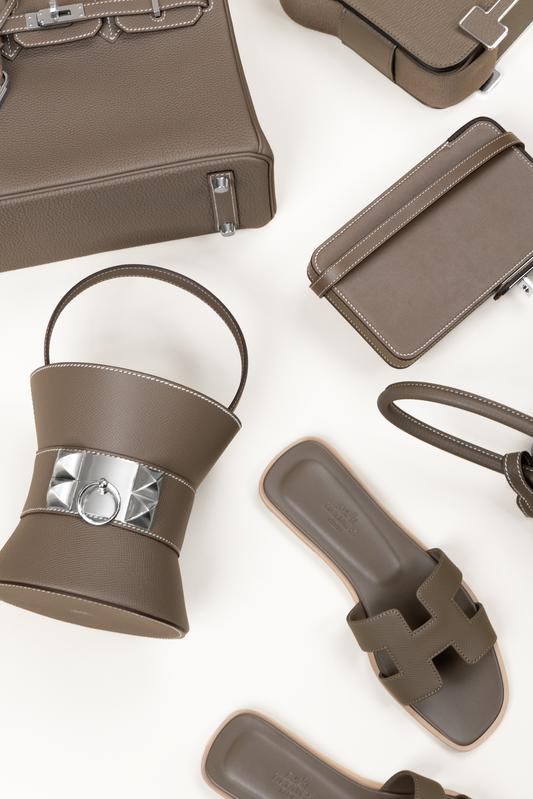 Hermès Mini Lindy Grizzly Etoupe GHW with Oran Etoupe Sandals & Kelly Etoupe Belt GHW