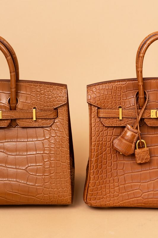 Hermès Birkin 25 Sellier Matte Alligator Gold & Birkin 25 Retourne Matte Alligator Gold