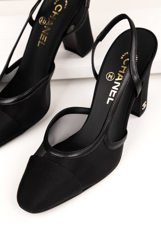 Chanel Vanity Case with Chain & Leather Slingbacks in Burgundy