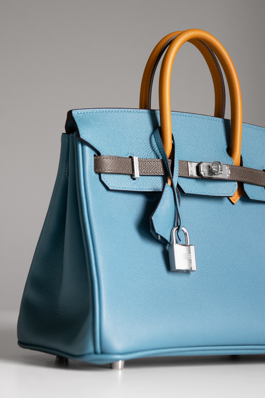 Hermès Birkin 25 Epsom Tricolor in Blue Jean/Sesame/Ecorce PHW