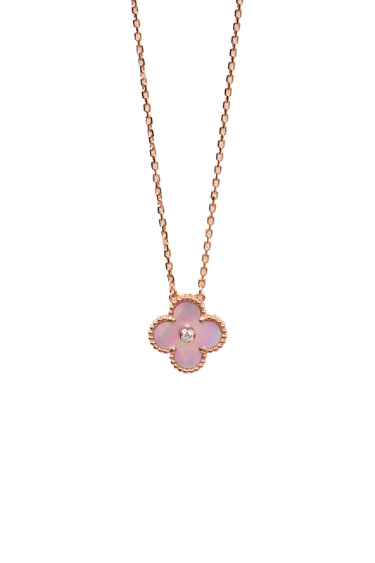 Van Cleef & Arpels Vintage Alhambra Rose Gold Diamond/Pink Mother of Pearl Pendant