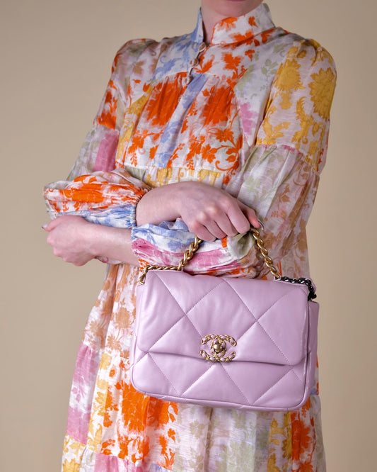 فستان زيمرمان بوستكارد لانترن متوسط الطول وحقيبة شانيل 19 فلاب