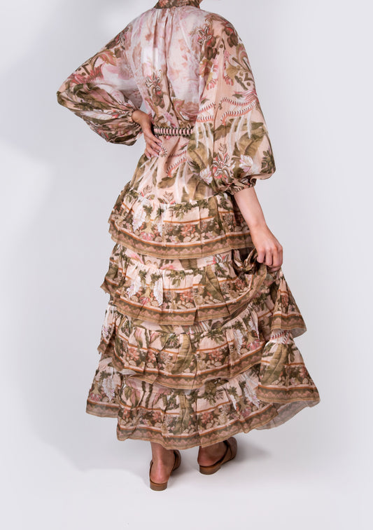 فستان طويل من زيمرمان مع كشكشة وحذاء هيرميس ميني كيلي موف في إبسوم