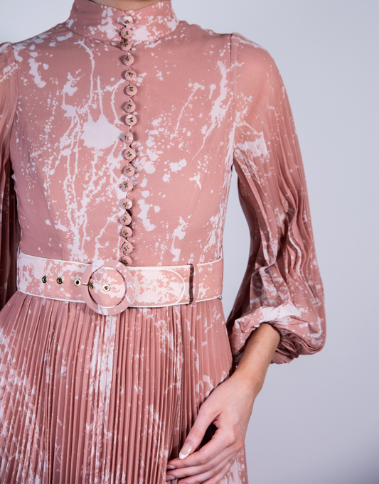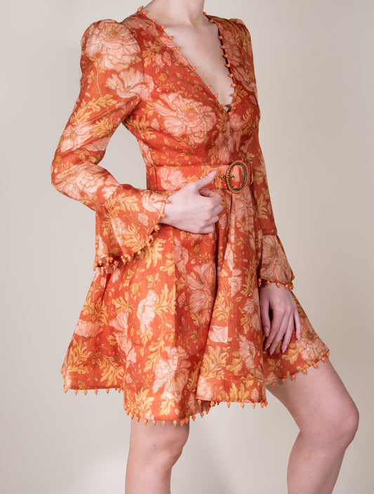 فستان زيمرمان كاليدوسكوب قصير باللون العنبر الزهري