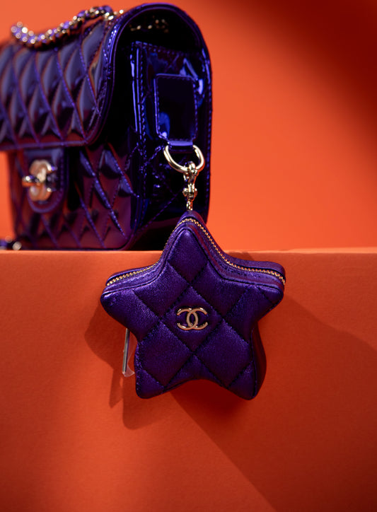 حقيبة شانيل أرجوانية معدنية قابلة للطي مع محفظة نقود على شكل نجمة