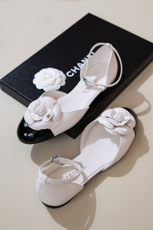 حذاء شانيل ماري جينس باللونين الأبيض والأسود