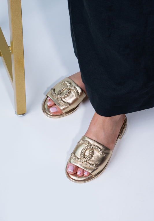 حذاء شانيل ميولز باللون الوردي الفاتح