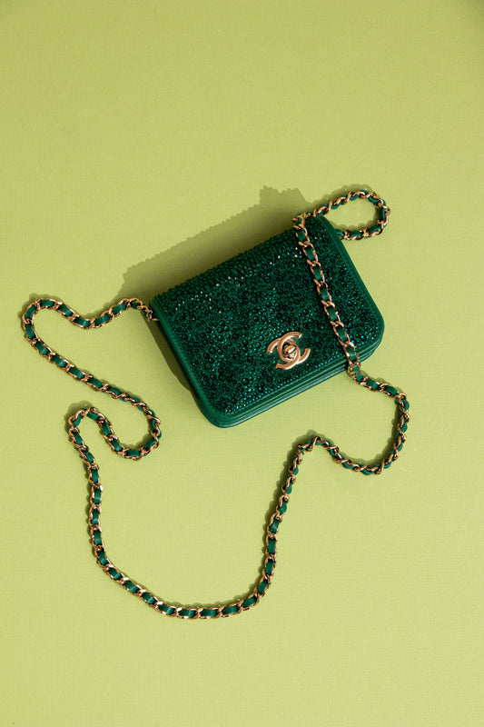 حقيبة شانيل O-Purse Vanity باللون الأخضر مع سلسلة