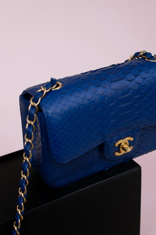 حقيبة شانيل ميني بايثون فلاب باللون الأزرق الملكي