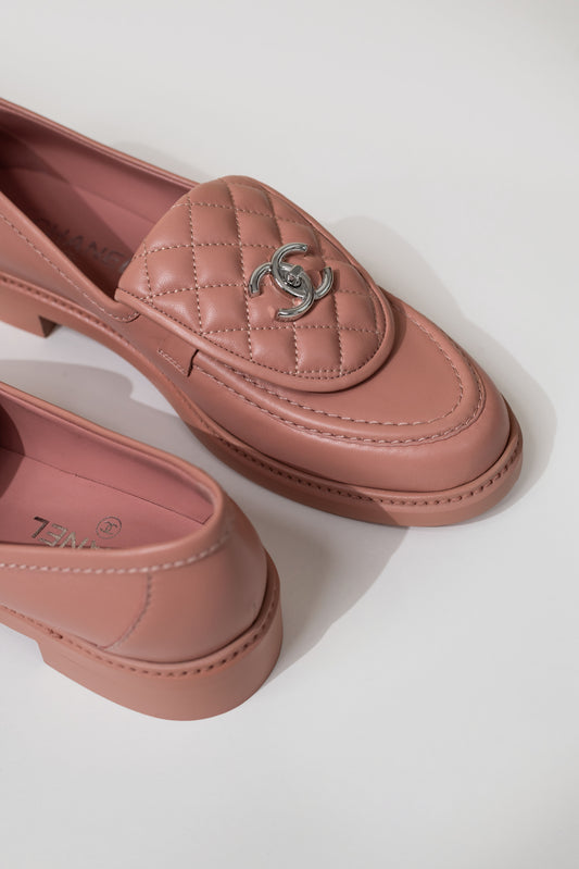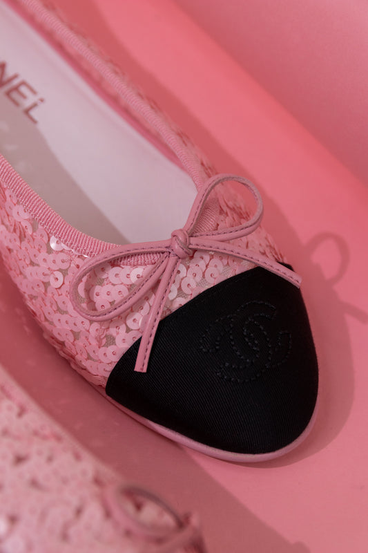 حذاء باليرينا مسطح من شانيل باللون الوردي مزين بالترتر