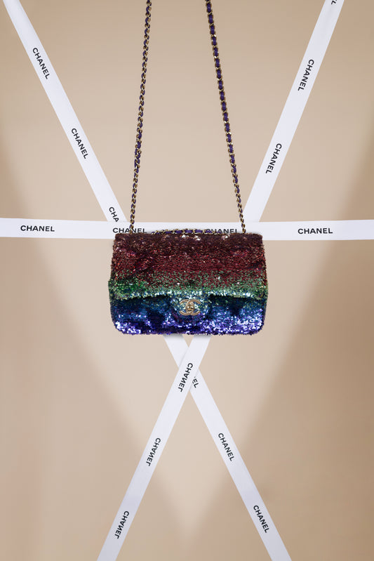 حقيبة شانيل صغيرة متعددة الألوان مزينة بالترتر