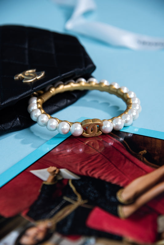 Chanel Pearl Handle Quilted Lambskin Clutch