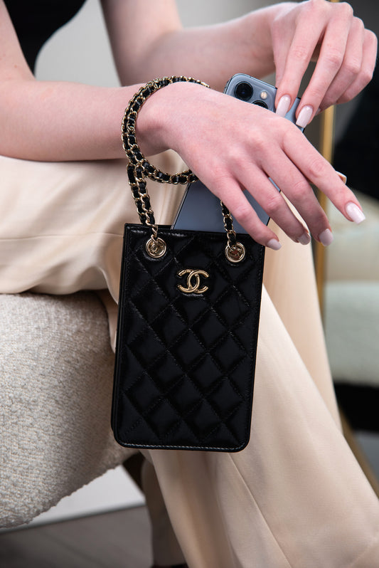 Chanel Small Lambskin/Crochet Vanity with Gold-Tone Metal Black Chain