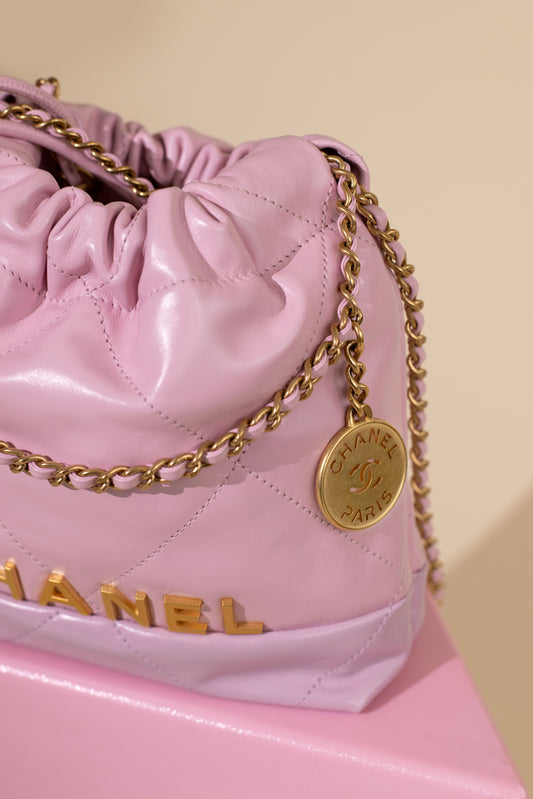 حقيبة شانيل ذات المقبض العلوي باللون الوردي الفاتح وهيرميس ميني كيلي 20 شيفر ميتاليك جولد PBHW