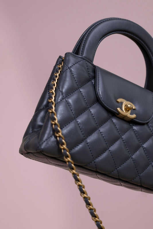 حقيبة شانيل صغيرة سوداء بمقبض لؤلؤي