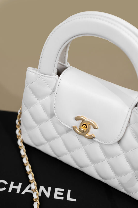 حقيبة شانيل ذات المقبض العلوي باللون الأبيض