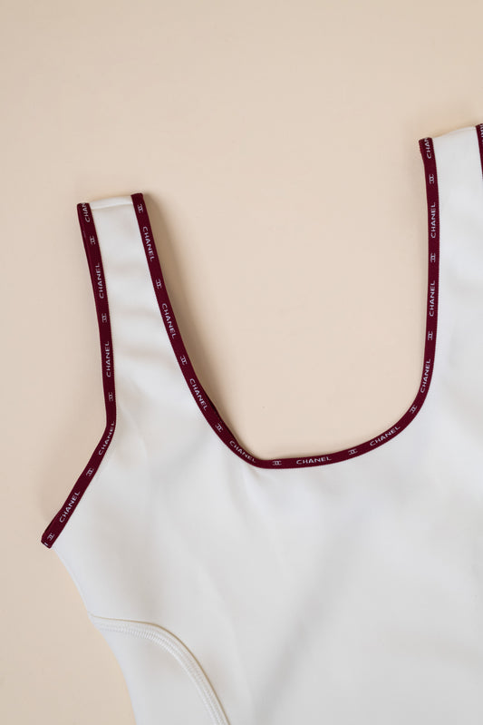 ملابس سباحة شانيل باللون الأبيض/البورجوندي