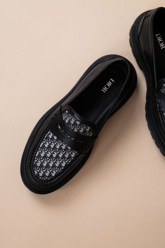 ديور - حذاء كود لوفر من جلد العجل الأسود والصوف الأبيض