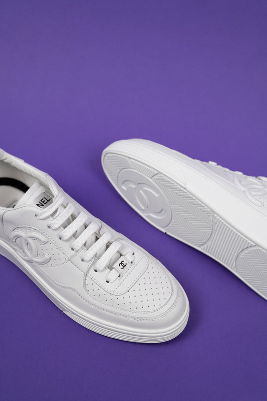 حذاء شانيل سي سي الرياضي باللون الأبيض