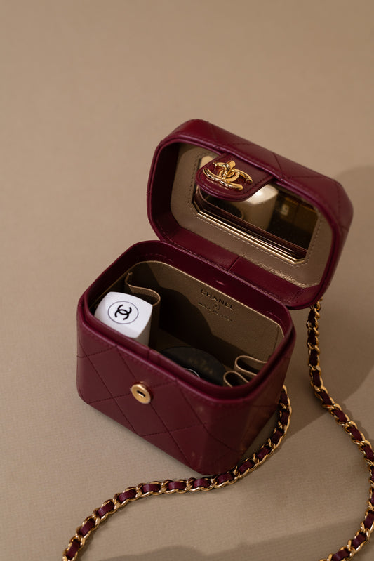حقيبة مستحضرات تجميل شانيل بورجوندي مع سلسلة