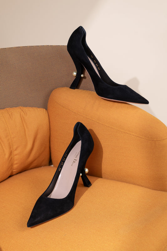 ديور - حذاء J'Adior أسود مفتوح من الخلف ومزين بالزهور