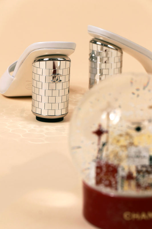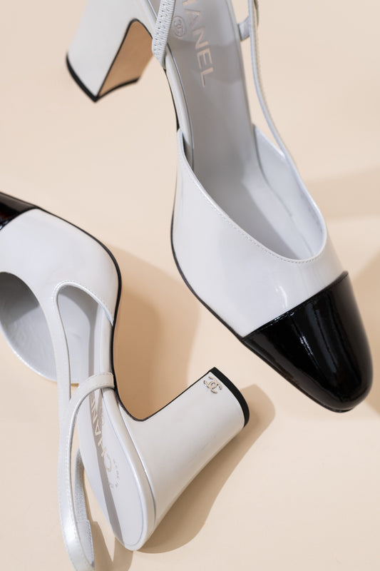 حذاء شانيل مفتوح من الخلف باللونين الأبيض والأسود