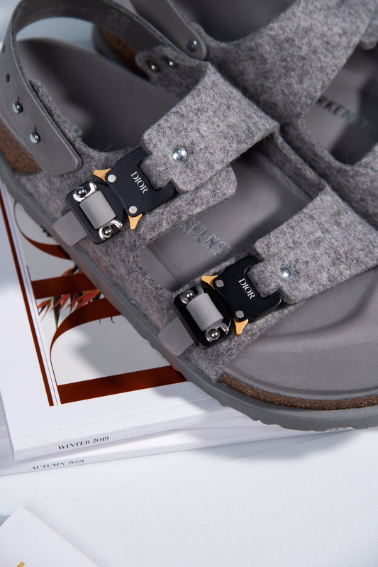 ديور - صندل بيركينستوك ميلانو من الصوف الرمادي المحشو