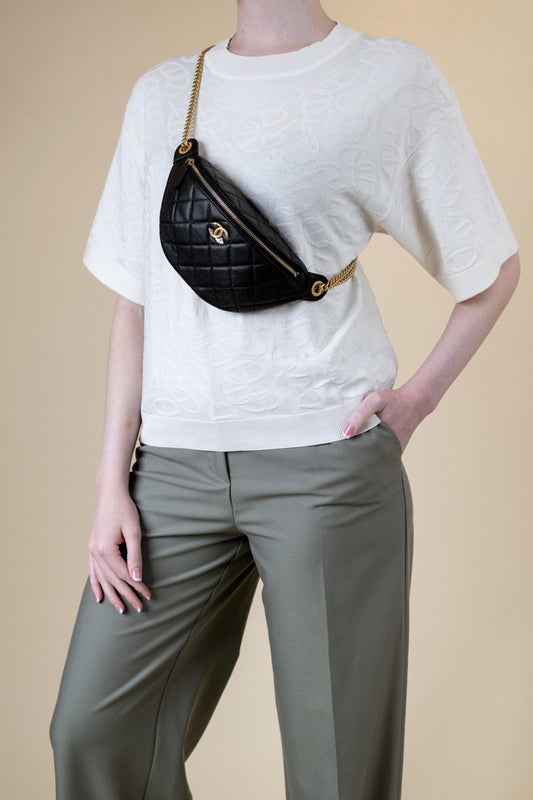 Chanel White CC Blouse & Hobo 25 Black Canvas Bag