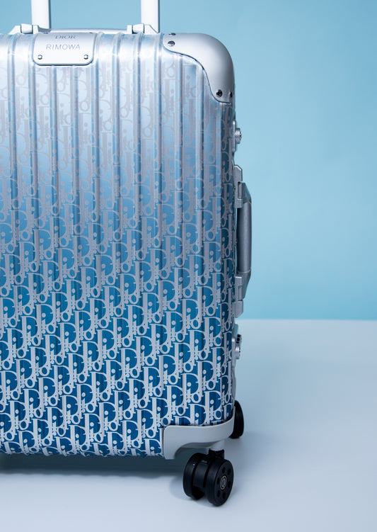 حقيبة سفر Dior & Rimowa Cabin مصنوعة من الألومنيوم Dior Oblique باللون الأزرق المتدرج