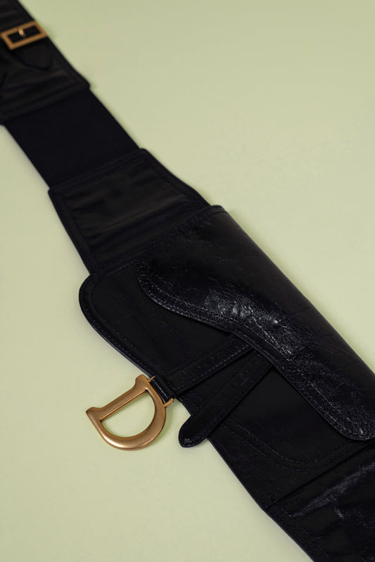 ديور - بونشو حريري مع حزام سرج أسود وحقيبة صغيرة من 30 مونتين