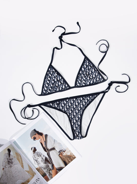 حقيبة ديور ميني ليدي ديور من الساتان بلون لاتيه مطرزة بالخرز وحذاء شانيل مسطح مزين بفيونكة باللونين الأبيض والأسود