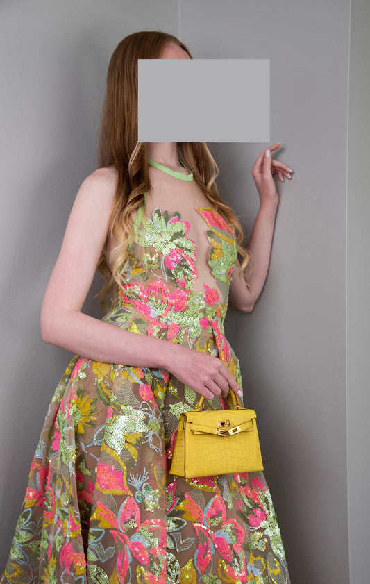 Elie Saab Pleated Sequined Tulle Halterneck Gown