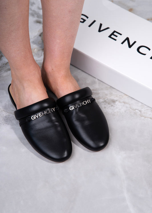 Givenchy Black Logo-Print Backless Mules