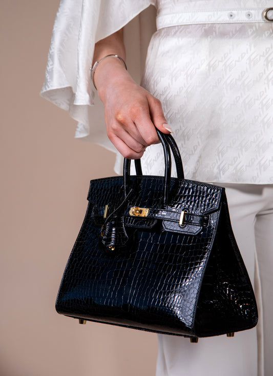 Fendi - Leather Jacket with Hermès Kelly 25 Matte Alligator in Black