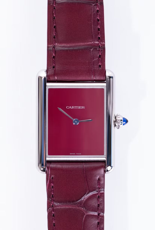 ساعة كارتييه تانك طبعة محدودة باللون العنابي