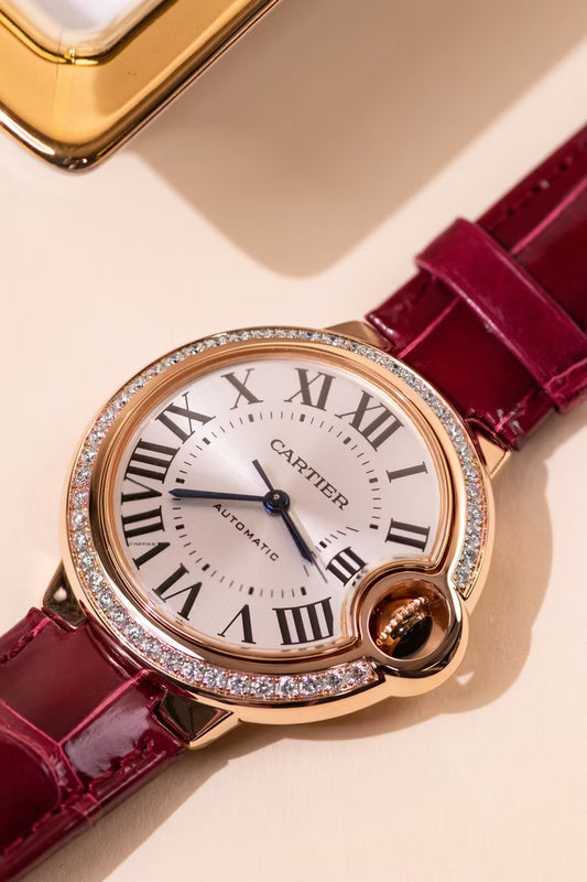ساعة كارتييه بايجنوار موديل صغير مرصعة بالألماس