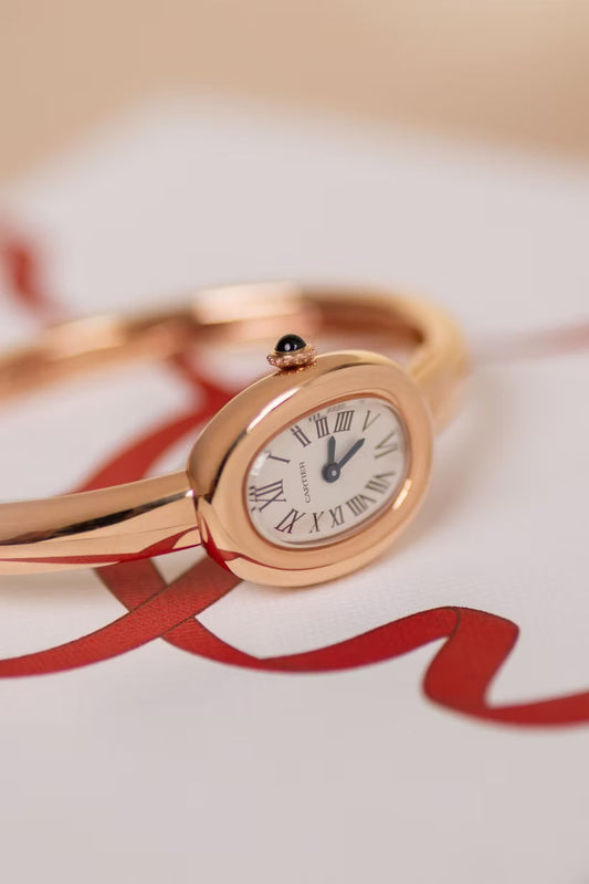 ساعة كارتييه بايجنوار بالذهب الوردي