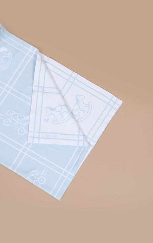 Hermès Avalon Baby Blanket in Blue Genievre White