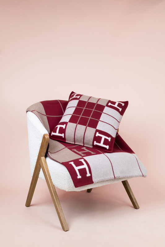 Hermès Avalon III Throw Blanket & Cushion in Écru/ Rouge H