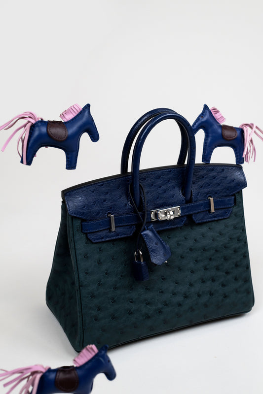 Hermès Birkin 25 Ostrich in Vert Cypress/Blue Iris PHW