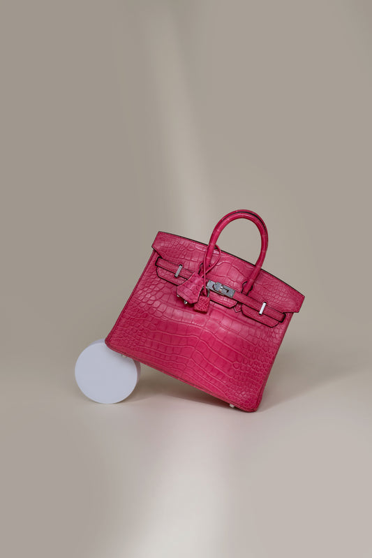 حقيبة هيرميس بيركين 25 من جلد التمساح غير اللامع باللون الوردي إكستريم PHW
