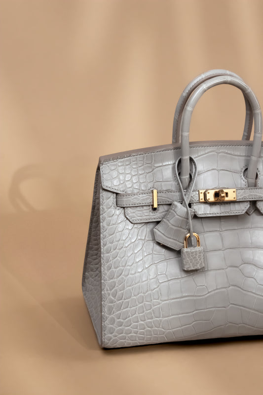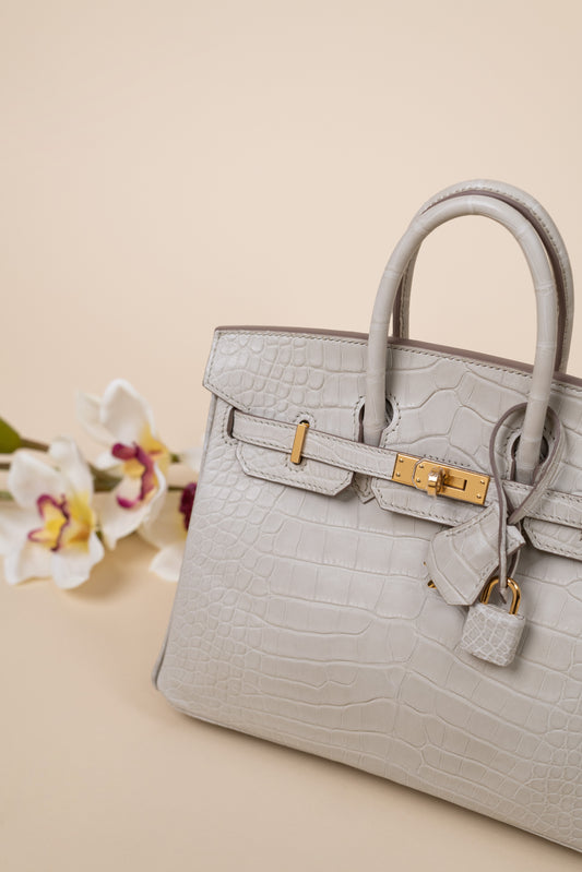 Hermès Birkin 25 Matte Alligator in Gris Perle GHW