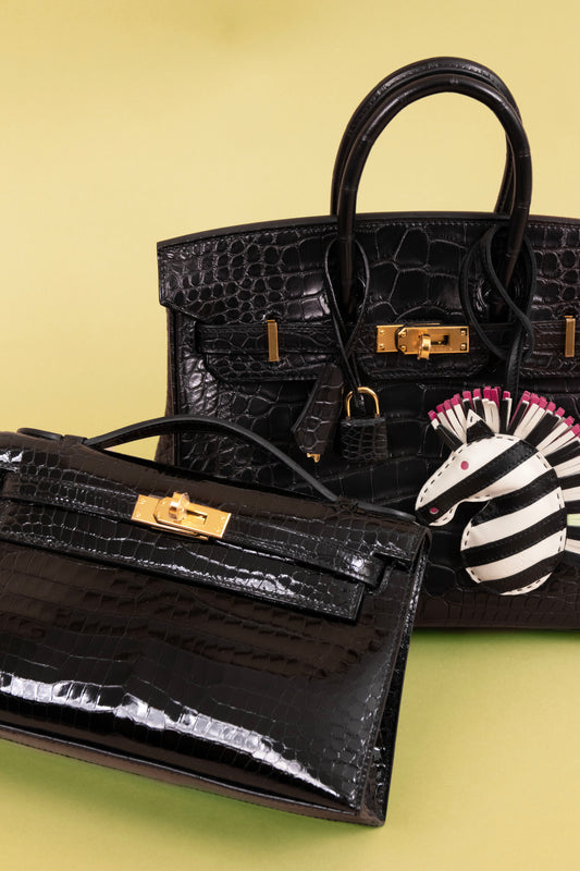 Hermès Birkin 25 Matte Crocodile Black & Kelly Pochette Shiny Alligator Black GHW