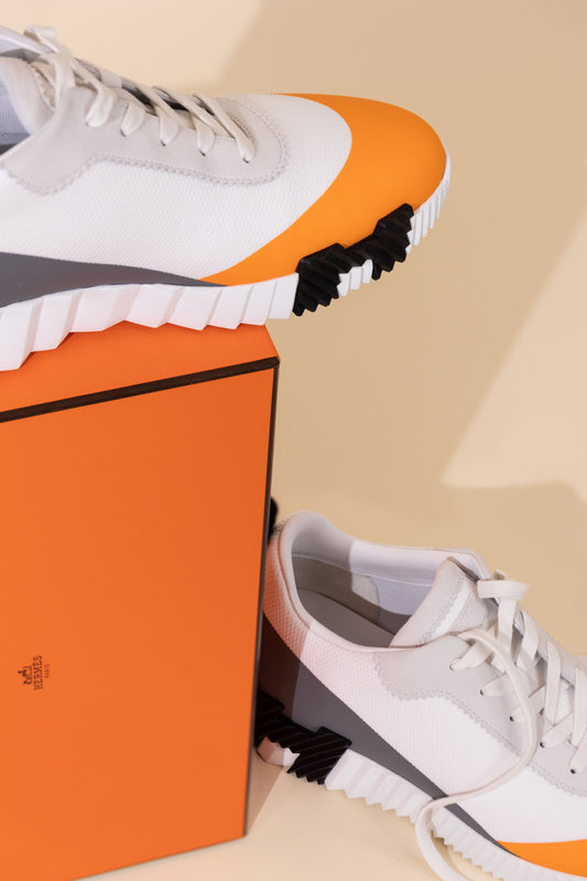 حذاء رياضي هيرميس باونسينغ باللون الأبيض/البرتقالي/الرمادي/الأسود 'H'
