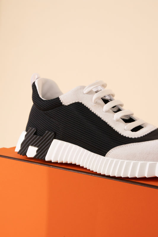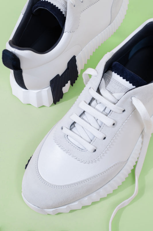 Hermès Bouncing Sneakers in White & Navy Blue H