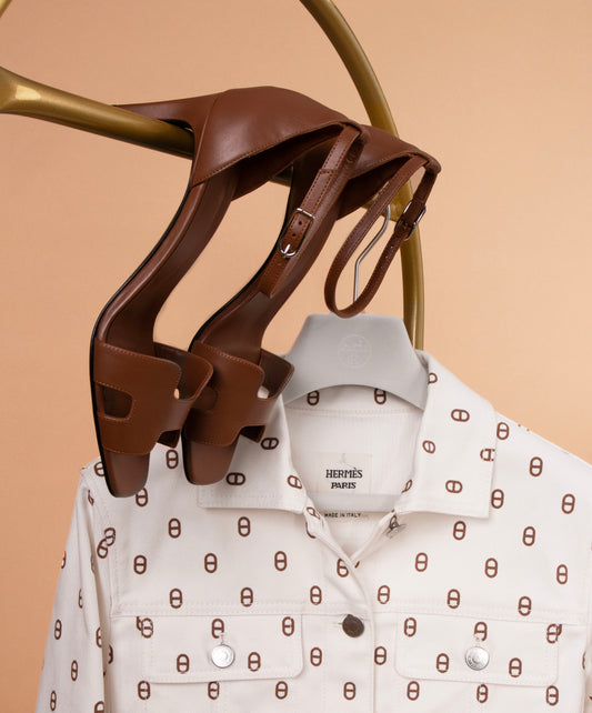 Hermès Chaine D'ancre White Denim Jacket & Gold Joy Sandals