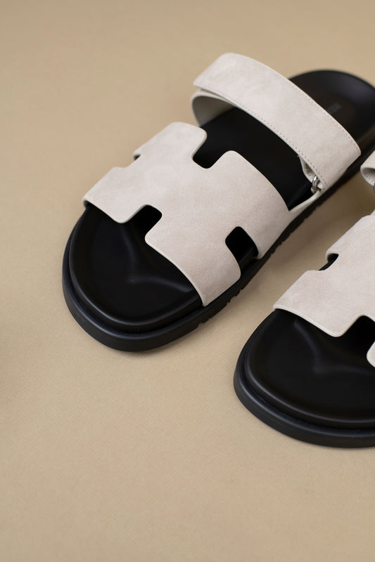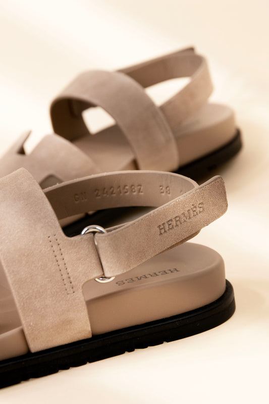 Hermès Chypre Suede Sandals in Beige Esquisse