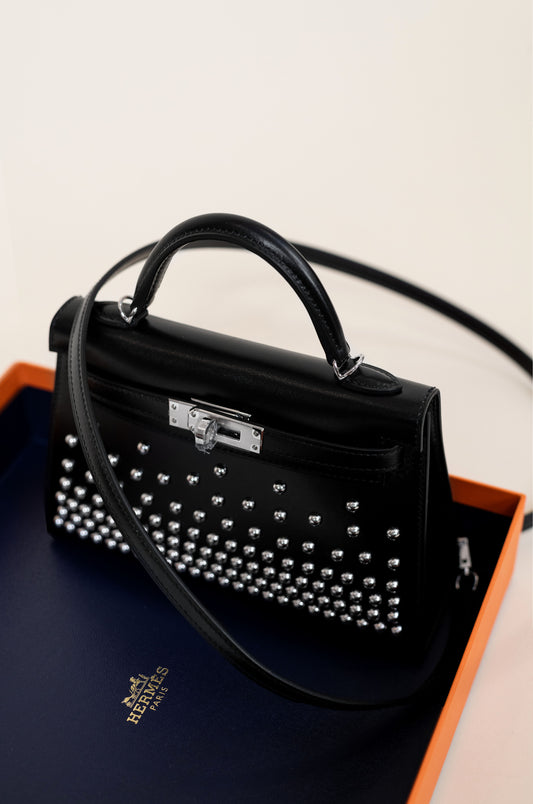 Hermès Clouté Mini Kelly 20 Studded Black PHW