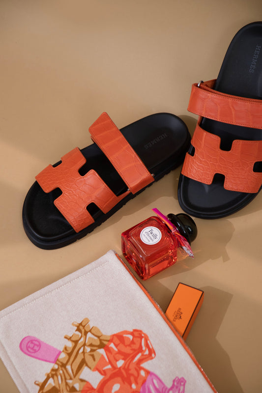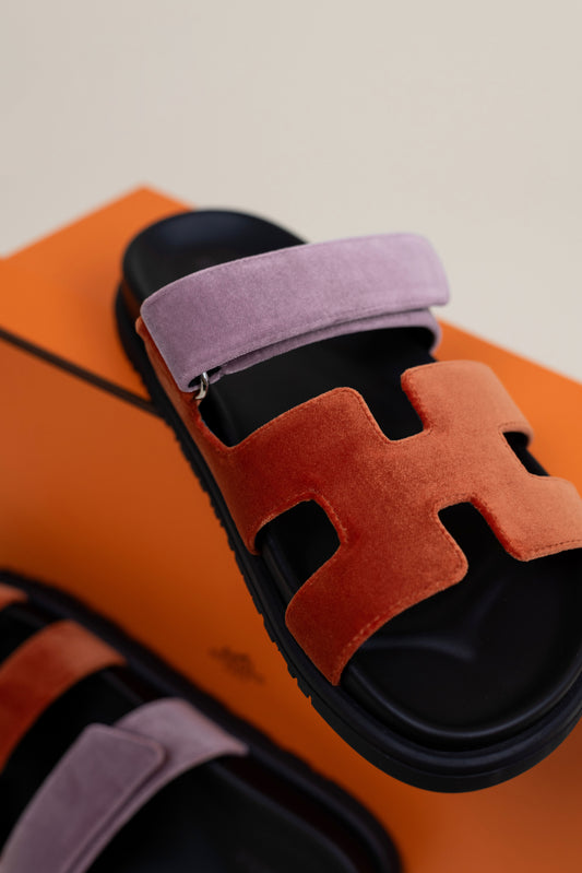 صندل Hermès Chypre Velvet باللون البرتقالي كانيون/برويير