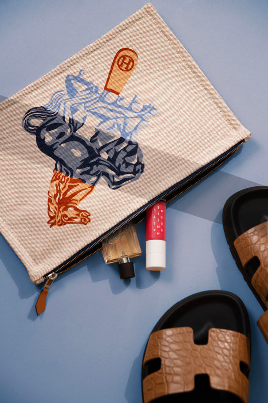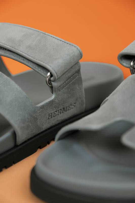 Hermès Chypre Suede Sandals in Nude & Blue Mineral